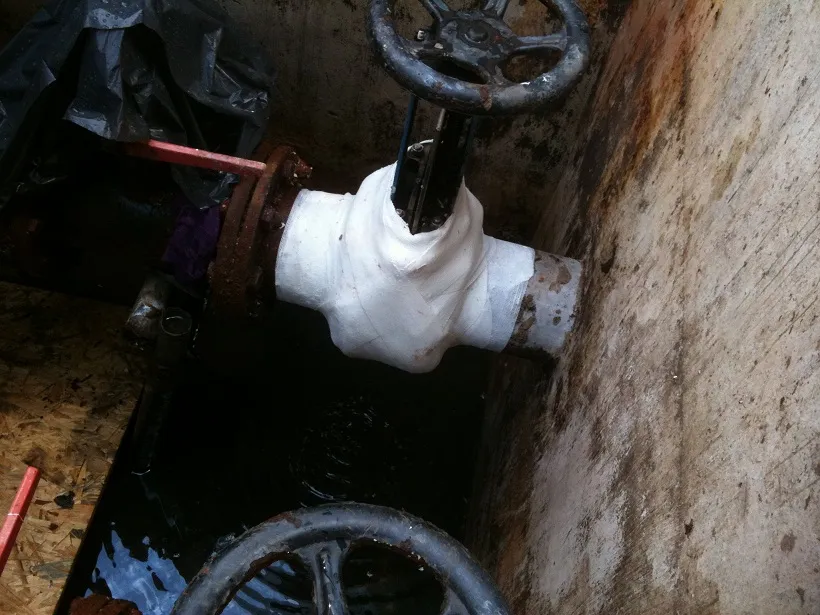 Whilst there are resin systems for which it is possible to achieve an acceptable bonded connection when surfaces are wet (i.e. when using SealXpert PS106 Underwater Repair Putty), a dry situation is preferred. Isolation and draining of the pipework can provide a dry external surface adjacent to the perforation. Consideration must be given to the compatibility of the composite repair material and the pipework service (transported fluids).